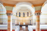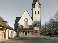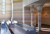 Kreuzförmiger Zentralbau mit Polygonalapsis, Westportikus und hohem Turm in der Südwestecke,1913/14 von Reinhold Becker, im Ganzen wie im Detail der Reformarchitektur verpflichtet. 2023 erhielt ich den Auftrag von den ausführenden Architekten, die farblich neu gestaltete Kirche zu fotografieren. Der Innenraum wurde von dem Künstler Ulrich Reimkasten, durch horizontale Farblinien in verschiedenen Pastelltönen, farblich neu gestaltet. Insgesamt zeigt sich die Christuskirche in Lünen durch diese neue Farbgestaltung als ein gelungenes Beispiel dafür, wie Kunst und Architektur miteinander in Einklang gebracht werden können. Die horizontalen Linien wurden mittels eines Lasers im ganzen Raum projiziert und nachgezeichnet. Ulrich Reimkasten ist bekannt für seine Arbeiten, die oft traditionelle Elemente mit modernen Akzenten verbinden. Er verknüpft in seiner Arbeit Farbtöne, die das Licht im Raum auf besondere Weise reflektieren und so eine Atmosphäre der Erhabenheit und zugleich der Offenheit schaffen.